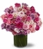 When only the best will do, send all your love this Love with a magnificent floral arrangement of roses, roses and more roses! Dozens of pink and lavender roses are beautifully arranged in a clear glass vase lined with ti leaves.