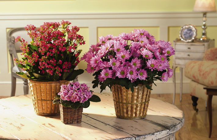 Assorted Blooming Plants in a Basket