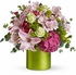 Fancy up their day! When you want to give the extra special treatment, choose this shimmering green vase of fancy flowers and natural greenery. Soft shades of pink and green evoke serenity. Delivery in Irving Texas to all zips