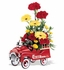 Make him feel like a kid again with bright flowers in a blazing red metal fire engine, complete with rubber-tired wheels that roll.