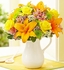 Inspired by the spectrum of color in the rolling fields of the European countryside, our florists designed this gathering of fresh roses, lilies, alstroemeria, poms and more inside a reusable white ceramic pitcher, as a nod to the continent's rustic style
