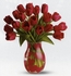 As sweet as a grade school crush, this charming clear glass vase with 20 red tullips.