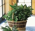 Croton, ivy, pothos and syngonium plants arrive together in a wicker basket with handle.
