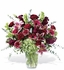 Red roses, stargazer lilies, burgundy stock, green hydrangea, pink bi-color gerberas and bells of Ireland – accented with magnolia leaves, spiral eucalyptus, noble fir and salal – are delivered in a clear glass vase. Approximately 25" (W) x 23" (H)