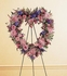 This open heart standing spray is a perfect symbol of your sympathy and support. Softly colored flowers such as delphinium, mums, and heather are accented with soft wildflowers to convey your deepest condolences to the family. Our florists use only the freshest flowers available so colors and assortment may vary