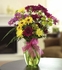 The freshest most vibrant flowers are brought together in a bright and cheery display. A lovely gift for any occasion, this assortment of colorful blooms includes pompons, mums, miniature myrtle and plumosa flowers